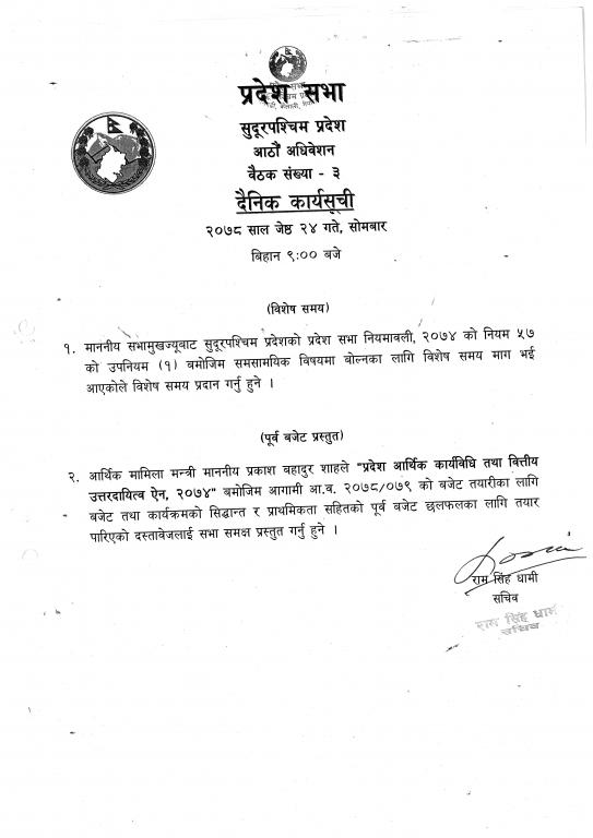 सुदूरपश्चिम प्रदेश, प्रदेश सभा सचिवालय.