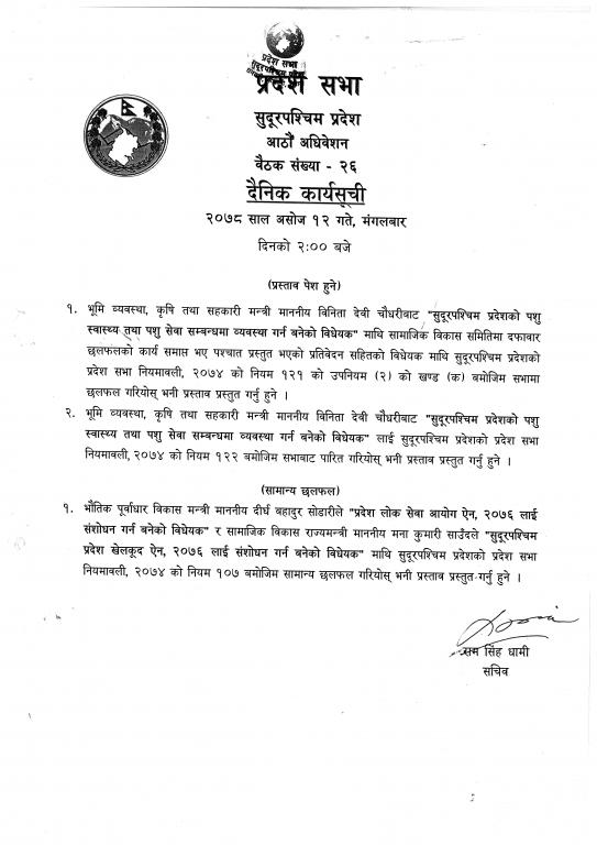 सुदूरपश्चिम प्रदेश, प्रदेश सभा सचिवालय.