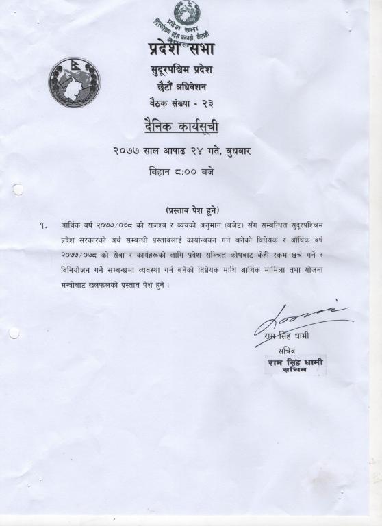 सुदूरपश्चिम प्रदेश, प्रदेश सभा सचिवालय.