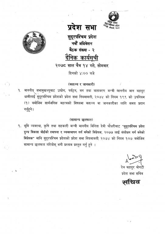 सुदूरपश्चिम प्रदेश, प्रदेश सभा सचिवालय.