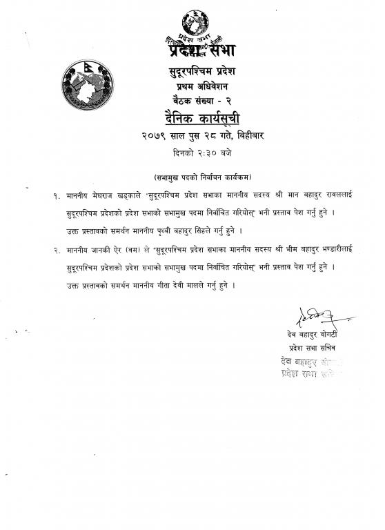 सुदूरपश्चिम प्रदेश, प्रदेश सभा सचिवालय.