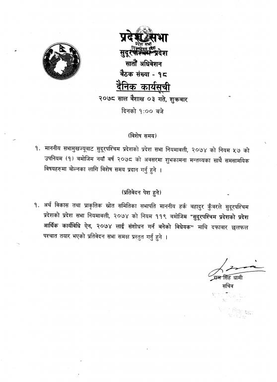 सुदूरपश्चिम प्रदेश, प्रदेश सभा सचिवालय.