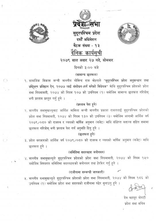 सुदूरपश्चिम प्रदेश, प्रदेश सभा सचिवालय.