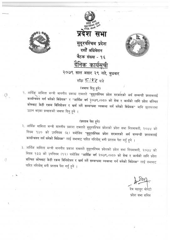 सुदूरपश्चिम प्रदेश, प्रदेश सभा सचिवालय.