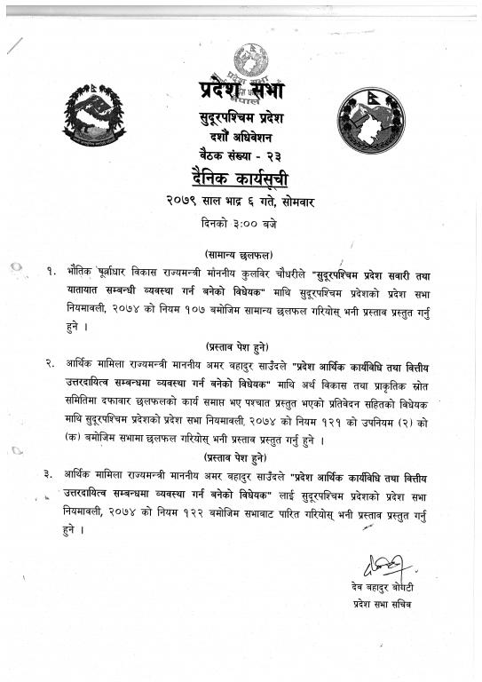 सुदूरपश्चिम प्रदेश, प्रदेश सभा सचिवालय.